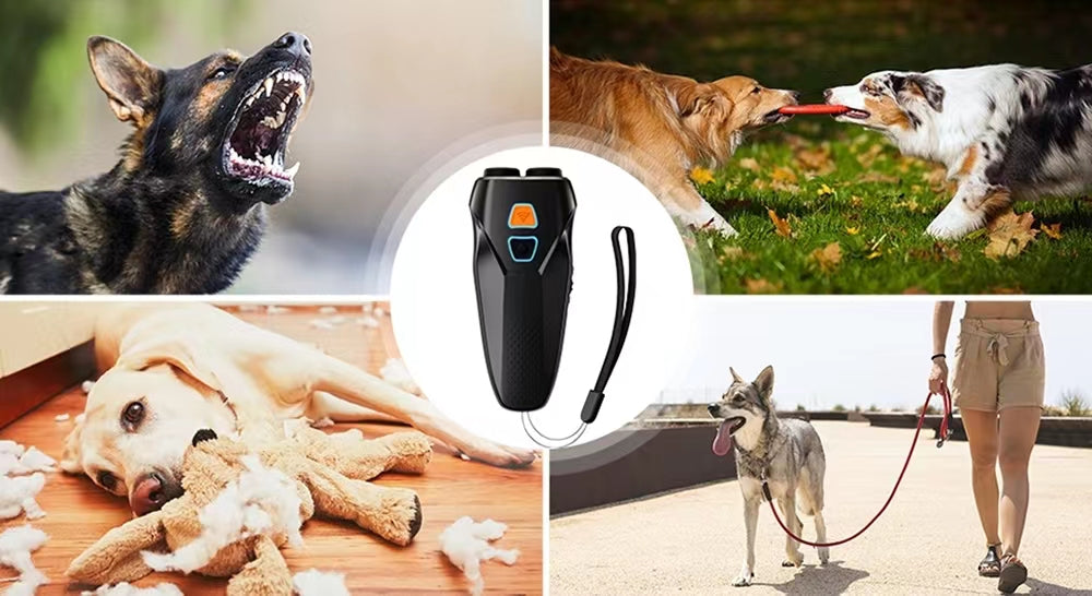 Our dog barking control devices use enhanced 20Khz-25Khz irregular frequency sound waves that are easier to detect by dogs, so it can effectively correct unwanted behavior and stop dog barking without harming them. When the dog barks, simply press the button on the device and it will emit an ultrasound of 20-25 KHZ, which exceeds the range of human hearing but can easily grab your dog's attention without hurting them like a dog whistle. This safe and efficient training aid is suitable for dogs of all types and sizes.
