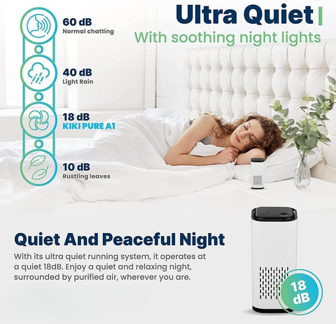 Say goodnight to noise and distractions. The Air Purifier runs quieter than a whisper at just 18dB. It also features in-built soothing RGB mood lights (with ON/OFF feature) to create a peaceful, relaxing atmosphere. Just turn it on and it'll quietly clean as you dream, delivering refreshing air all night without disturbing your sleep.